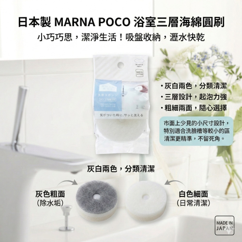 【現貨】【日本製🇯🇵】MARNA POCO 浴室三層海綿圓刷|附吸盤|小巧快乾 水龍頭 洗手台菜瓜布 浴室菜瓜布