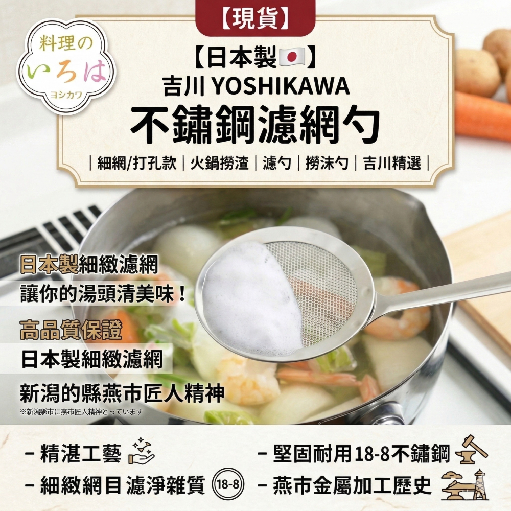 #日本製#YOSHIKAWA#不鏽鋼細目濾網勺#浮沫濾網#濾網#篩網#湯勺#日本製不鏽鋼細目濾網勺