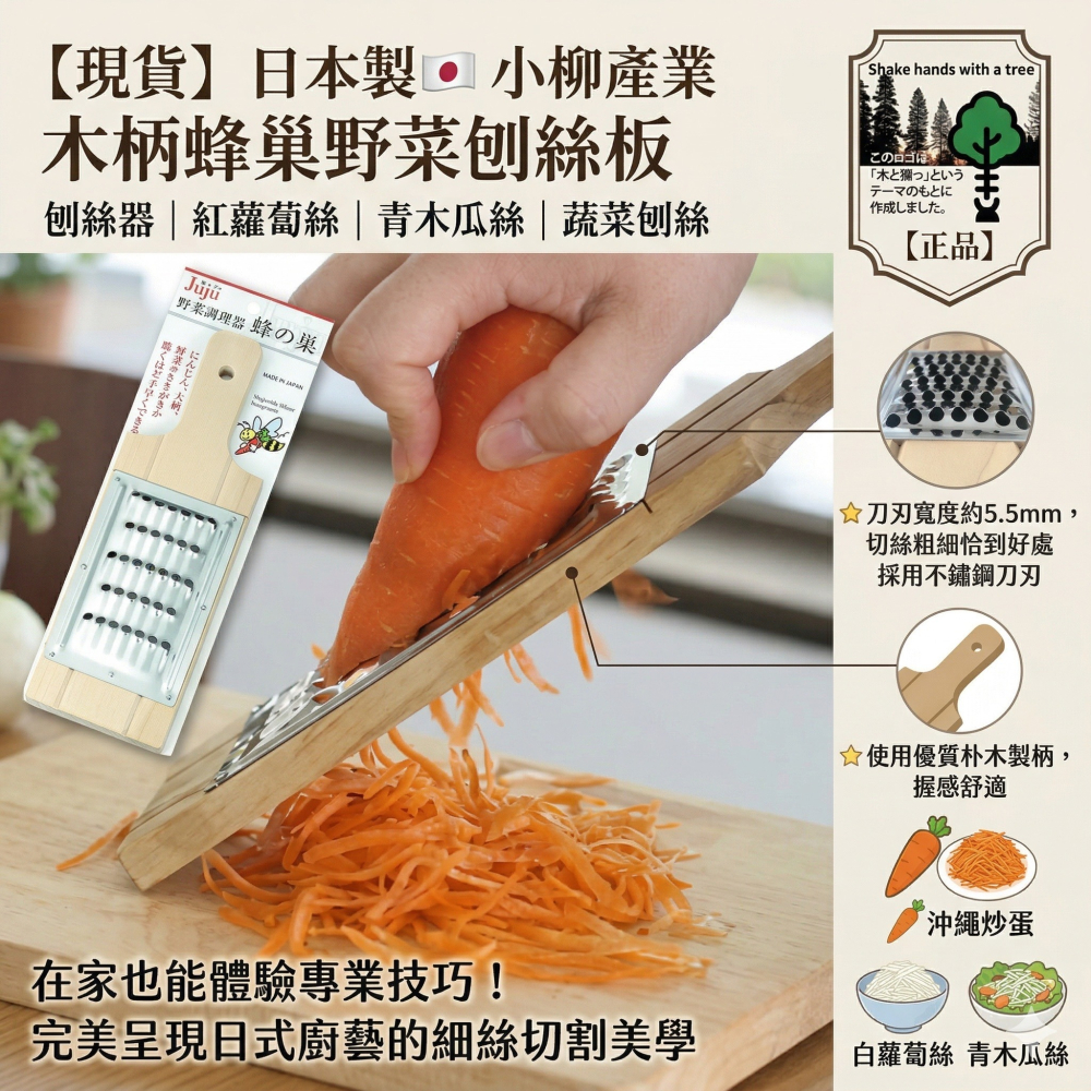 【現貨】【日本製🇯🇵】小柳產業 木柄蜂巢野菜刨絲板|刨絲器|紅蘿蔔絲|青木瓜絲|蔬菜刨絲