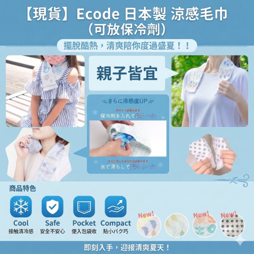 【現貨 日本製🇯🇵】Ecode 夏日涼感毛巾|可放保冷劑・親子皆宜・清涼好物