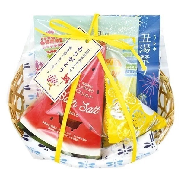 【現貨】【日本製🇯🇵 】西瓜風入浴劑禮盒|4種入浴品+蜻蜓圖案手巾+清涼籃子|入浴劑|沐浴用品|生日禮物|畢業禮物