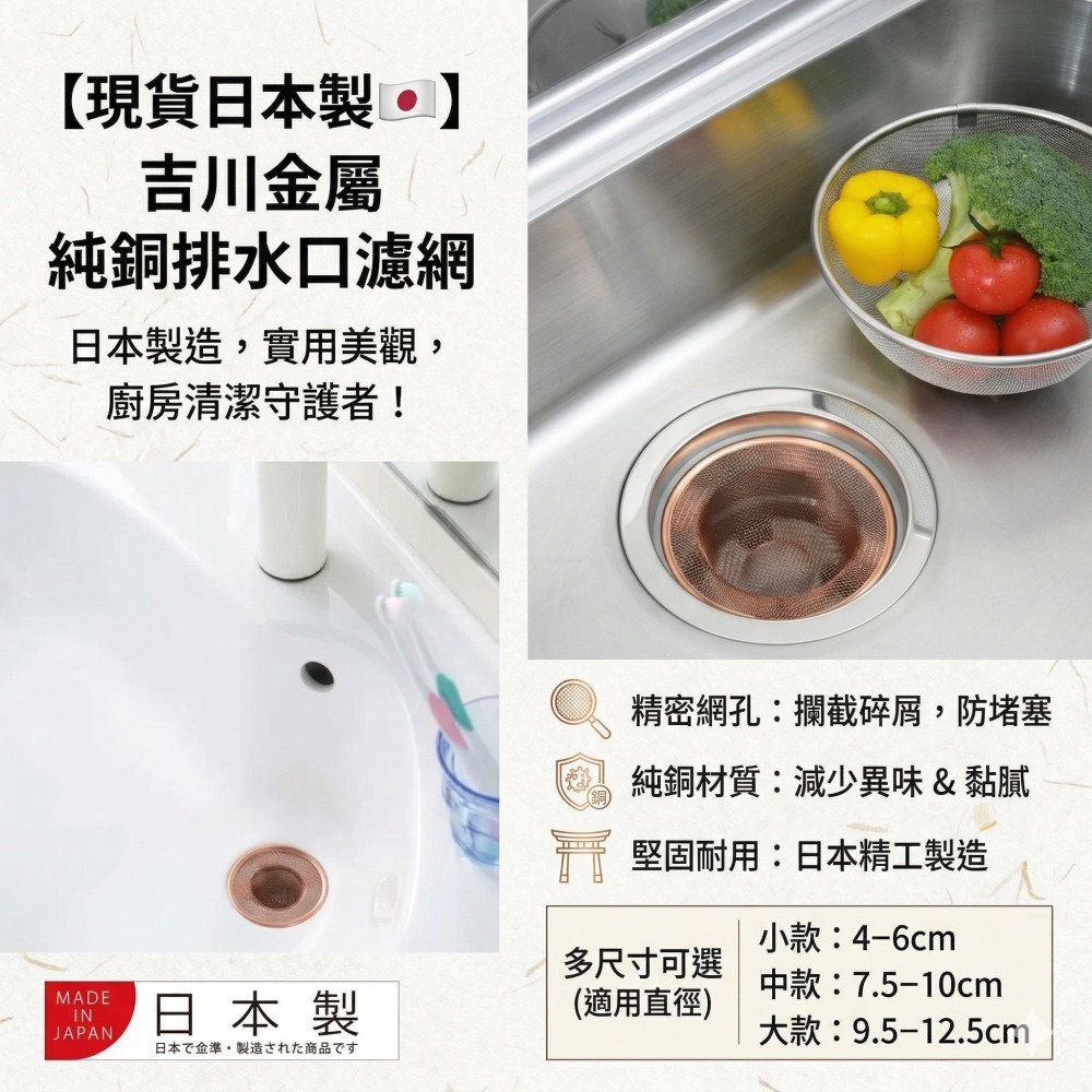 【現貨日本製🇯🇵】吉川金屬 純銅排水口濾網|多尺寸可選|耐用防堵 廚房濾網 水槽濾網 排水口濾網 流理臺濾網