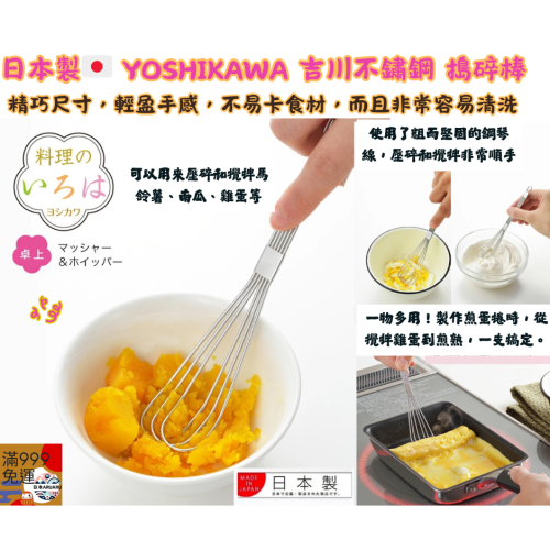 【現貨】【日本製🇯🇵】YOSHIKAWA 吉川 不鏽鋼搗泥攪拌棒|壓泥器 搗泥棒 磨泥湯匙 馬鈴薯壓泥 料理工具