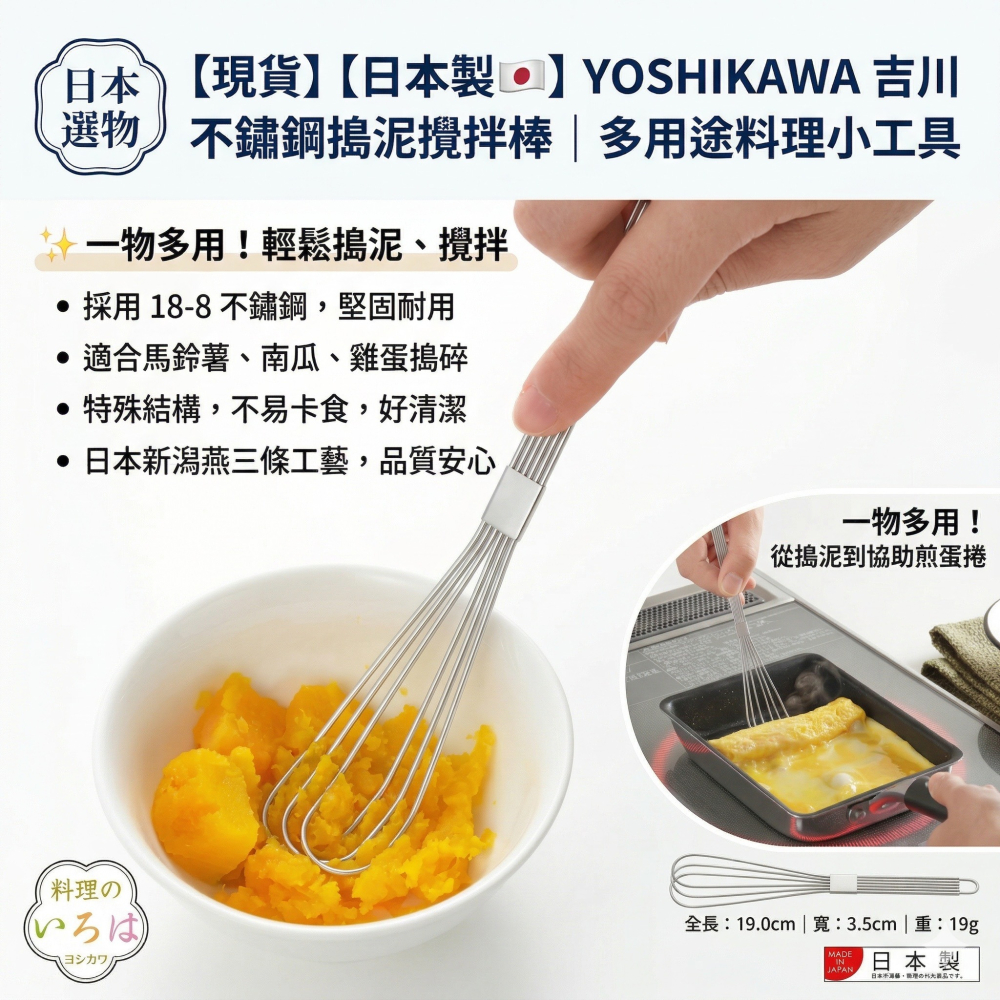 🍳 日本製 YOSHIKAWA 不鏽鋼搗泥攪拌棒|多用途料理小工具