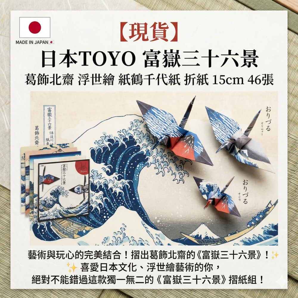 【現貨 日本製🇯🇵】 日本TOYO 富嶽三十六景 葛飾北齋 浮世繪 紙鶴千代紙 紙鶴折紙 15cm 46張