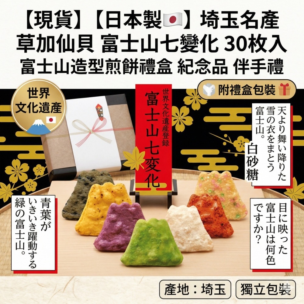 #日本製 #埼玉名產 #草加仙貝 #富士山煎餅 #日本零食 #伴手禮 #紀念禮盒 #米果 #仙貝禮盒