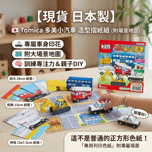 現貨 日本製】🇯🇵 Tomica 多美小汽車 造型摺紙組 (附場景地圖)|警車 消防車 救護車|親子DIY 勞作