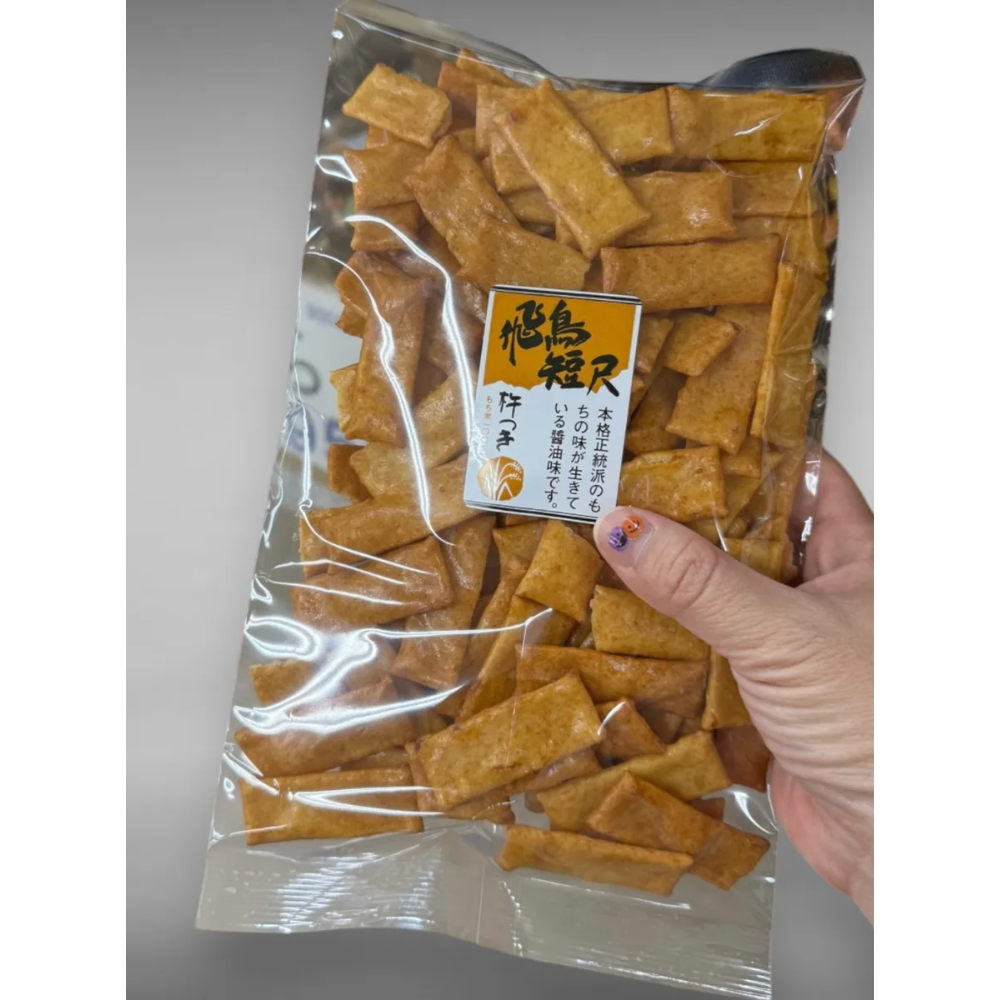 獨特的薄脆條狀設計,讓您每一口都能品嚐到不同的口感。嚴選醬油調味,風味獨特,是您品嚐米菓的全新體驗。
