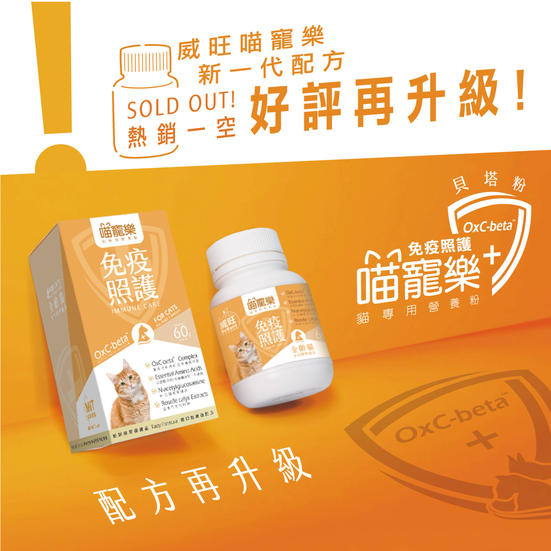 💯含專利成份OxC-Beta™ 貝塔粉 維持身體免疫力 【六種器官保健】✅關節 ✅皮膚 ✅腸胃 ✅呼吸道 ✅膀胱 ✅泌尿道 純正左旋離胺酸+ 牛磺酸💫貓咪必需胺基酸添加 【獨特專利REE米糠萃取】肌醇六磷酸、穀胱甘肽、胺基酸 消化系統保健💪蔬果酵素、水解蛋白 💗專利洛神花萼萃取物、蔓越莓萃取物 保健膀胱、泌尿道 😺全年齡、全品種都可食用😺