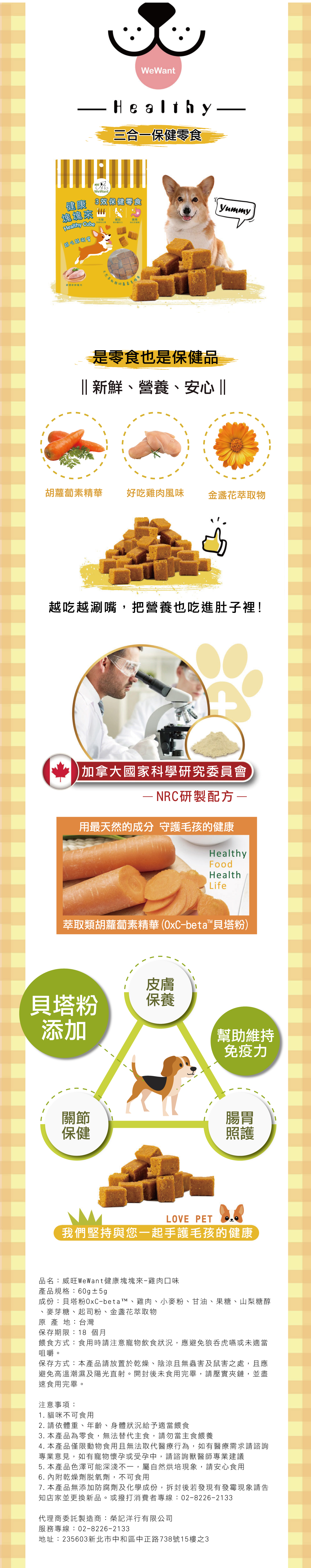 【威旺WeWant】健康塊塊來機能零食60g±5g-雞肉口味