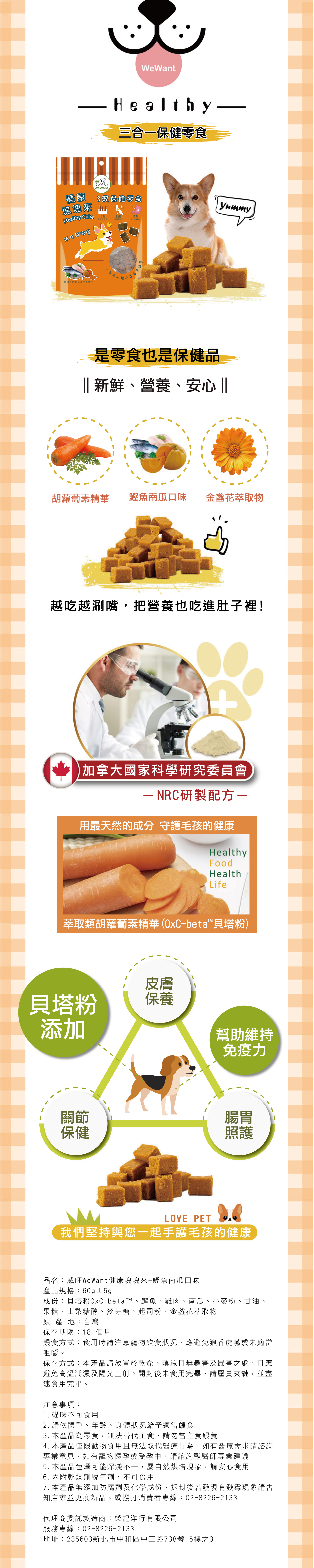 【威旺WeWant】健康塊塊來機能零食60g±5g-南瓜鰹魚口味