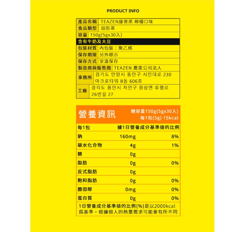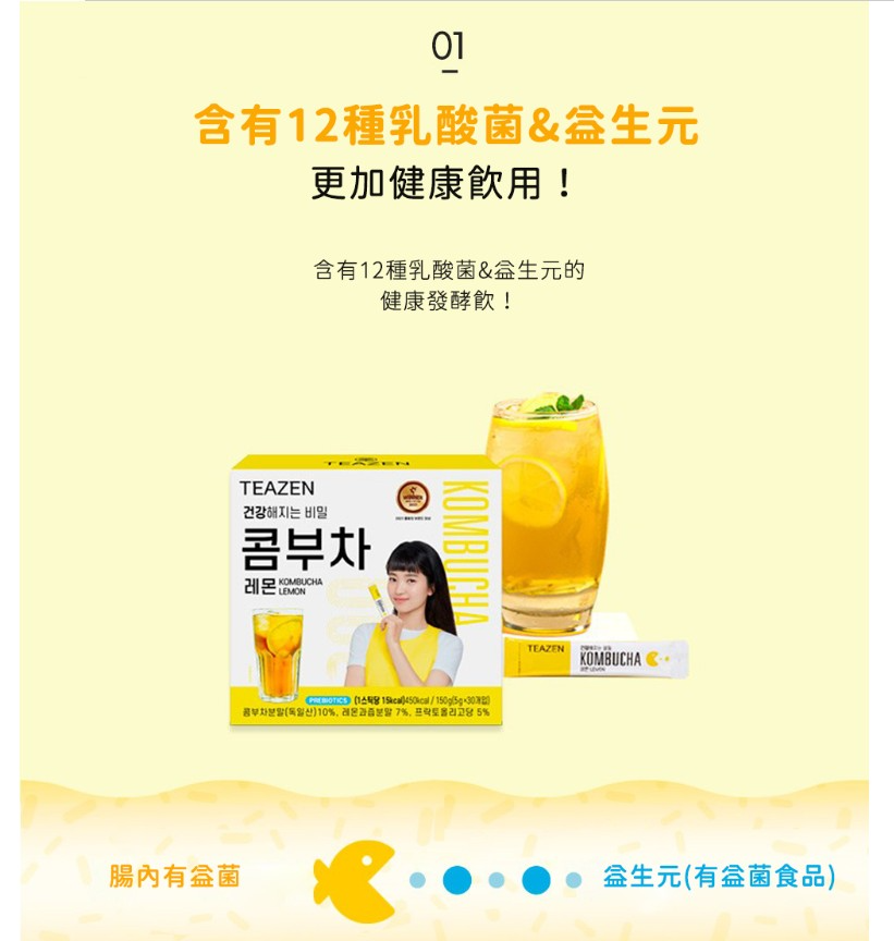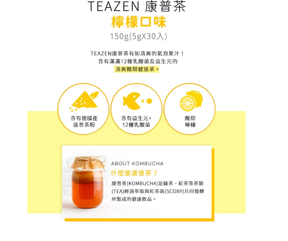 商品名稱:Teazen 康普茶沖泡飲 檸檬口味 5g 30條 1盒