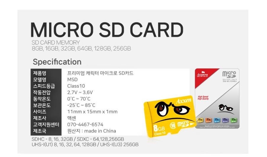 商品名稱:Axxen 卡通圖案Micro SD記憶卡 8GB 32GB 64GB 128GB 256GB