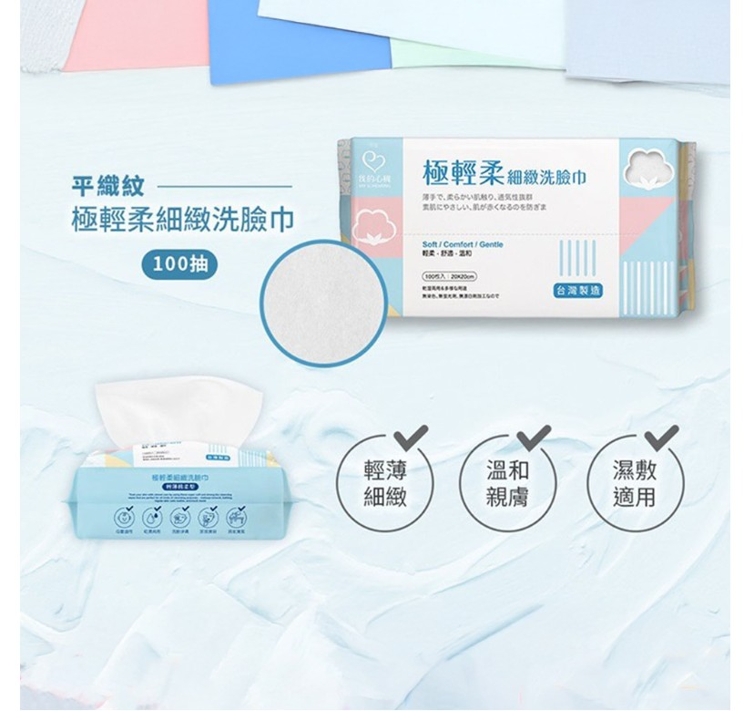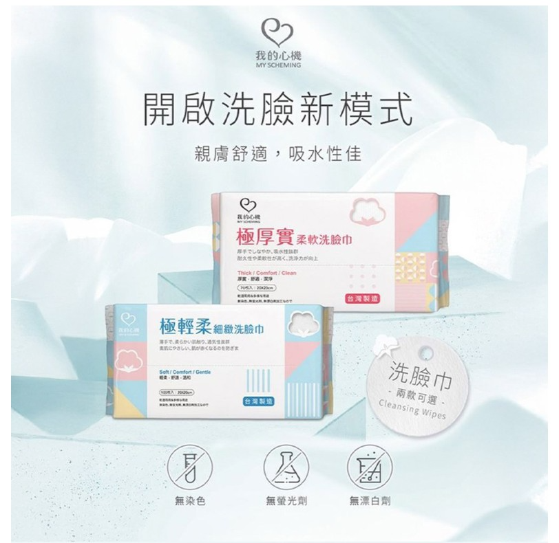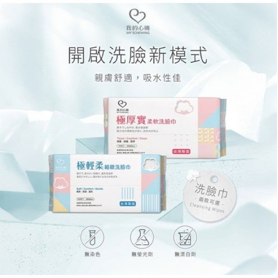 MY SCHEMING 我的心機 極輕柔細緻洗臉巾,採用高品質平織紋設計,觸感輕柔細緻,呵護您的嬌嫩肌膚。每包含有100張獨立包裝的洗臉巾,方便衛生,隨時隨地享受潔淨體驗。輕薄細緻的材質,不僅能快速吸收水分,還能溫和去除角質,讓肌膚煥發光彩。無論是日常洗臉、卸妝,還是濕敷護膚,都能輕鬆應對,一巾多用,是您居家旅行的必備好物。告別污垢與油光,一擦潔淨,簡單呵護您的肌膚。