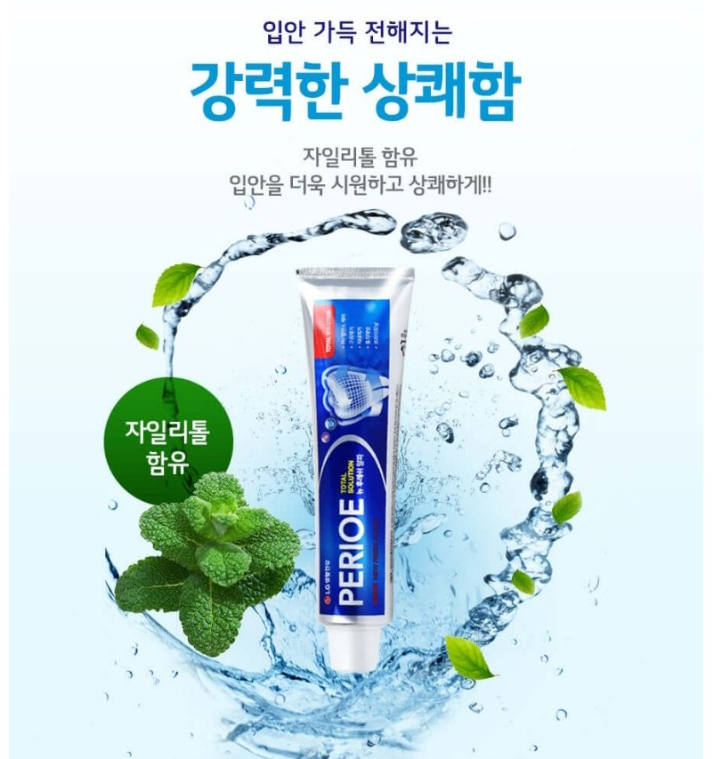 LG生活健康PERIOE新清新阿爾法牙膏,為全家提供全面的口腔護理。其獨特的PH平衡護理技術,能快速中和口腔酸性,維持口腔健康。此款牙膏有效去除口臭和牙菌斑,同時預防蛀牙,讓您擁有清新口氣和亮白牙齒。溫和配方不含苯甲酸鈉、對羥基苯甲酸酯及焦油色素,全家大小皆可使用。清爽的薄荷香氣帶來舒適的使用感,讓您每天都享受潔淨健康的口腔護理。