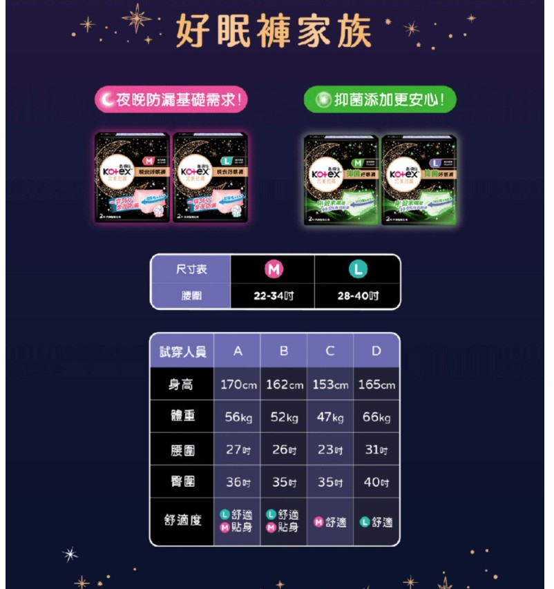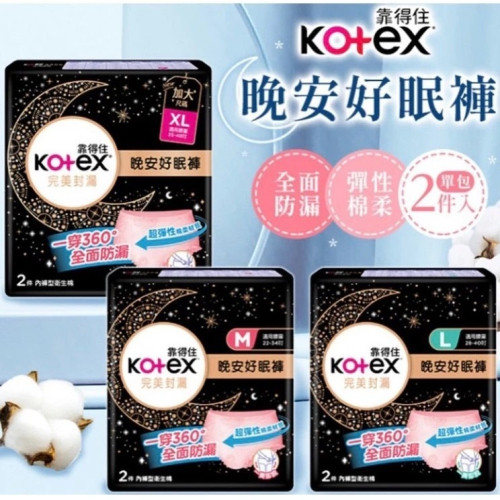 商品名稱:Kotex 靠得住 晚安好眠褲 褲型衛生棉 M L XL 2片/包