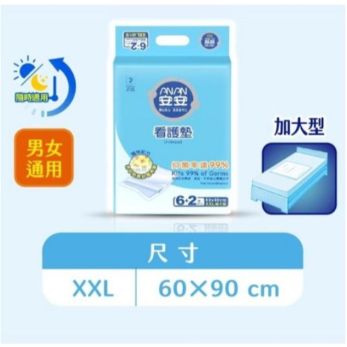 商品名稱:安安 看護墊 超強吸水性高分子吸收體 獨特封閉式設計 XXL(90 x 60cm) 8片/包