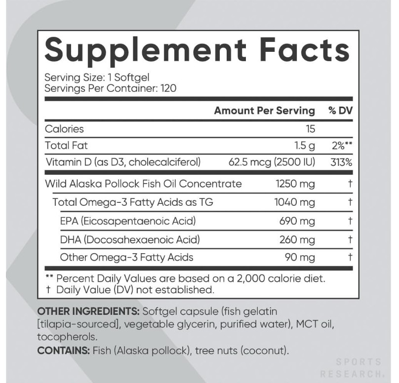 商品名稱:SPORTS RESEARCH Omega-3魚油維生素D3軟膠囊 1罐 120顆