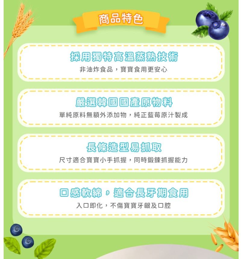 ■非油炸高溫蒸煮製成,保留米餅的原始風味,減少油膩感,讓寶寶吃得更健康。