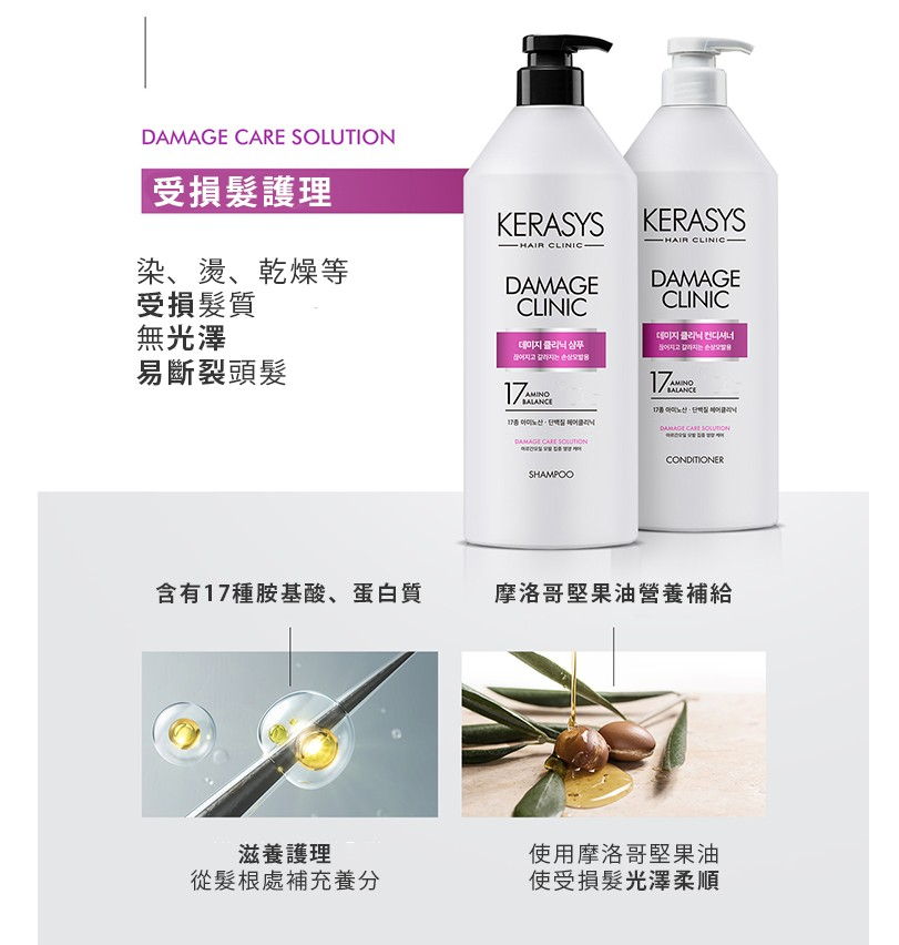 商品名稱:KERASYS 可瑞絲 植萃系抗損系列洗髮精 潤髮乳 含17種胺基酸 添加摩洛哥堅果油 980ml 1.5L 1瓶