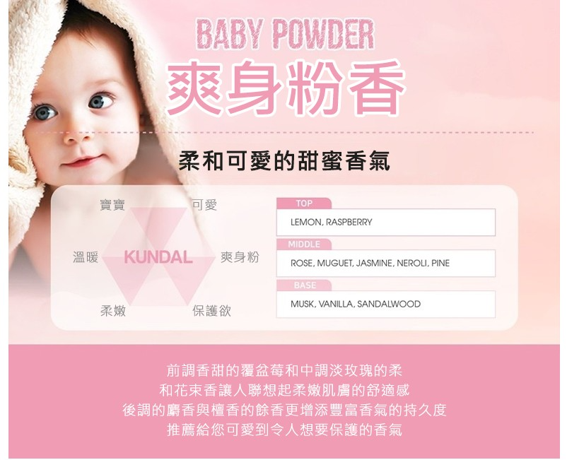 ■獨特爽身粉香氛,溫和清新,洗後散發淡淡香氣,帶來愉悅感受,展現個人魅力。