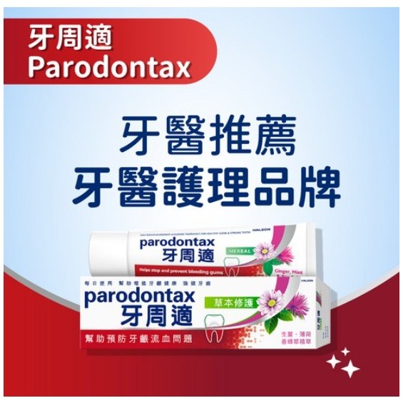 商品名稱:parodontax 牙周適 草本修護牙膏 含草本萃取物 清潔牙菌斑 清新口氣 90g 1條