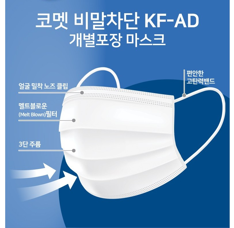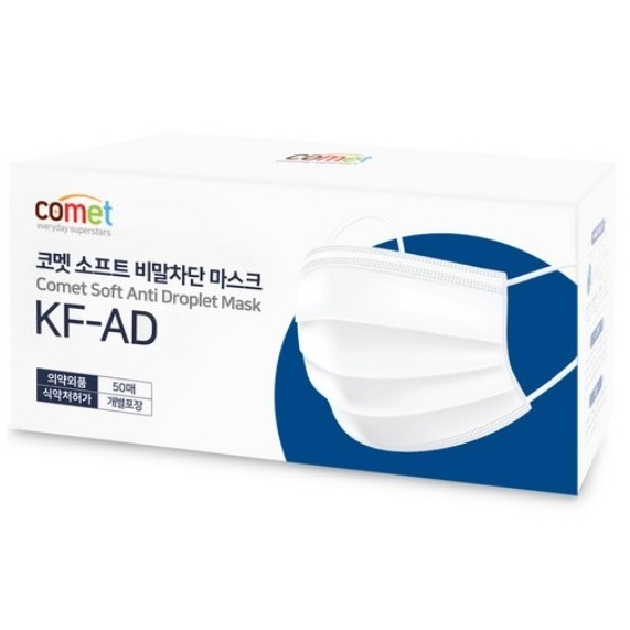 商品名稱:comet 成人舒適平面口罩 獨立包裝 KF-AD 50片 1盒 白色