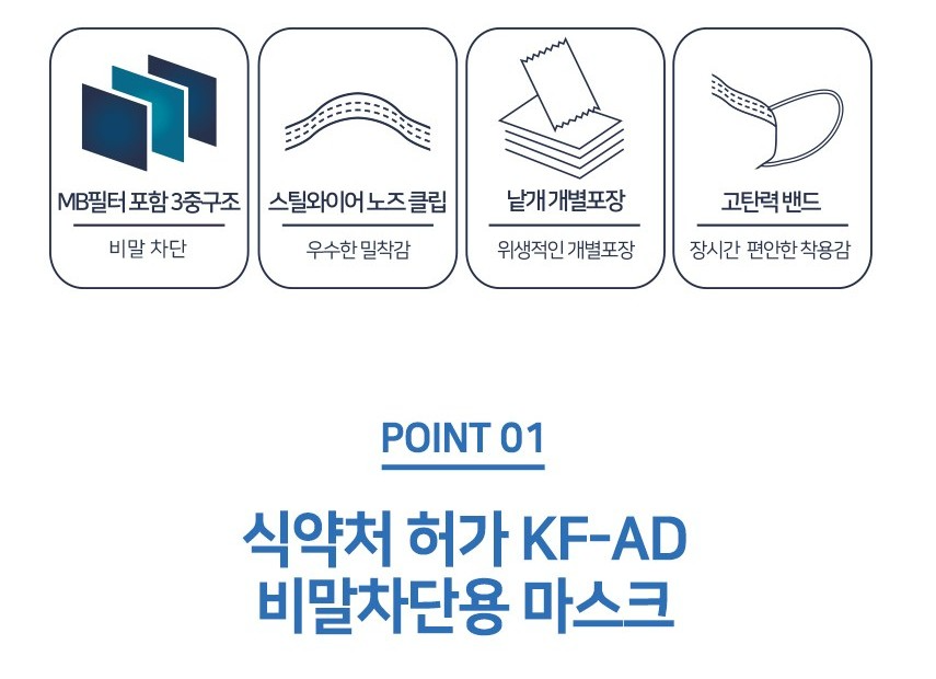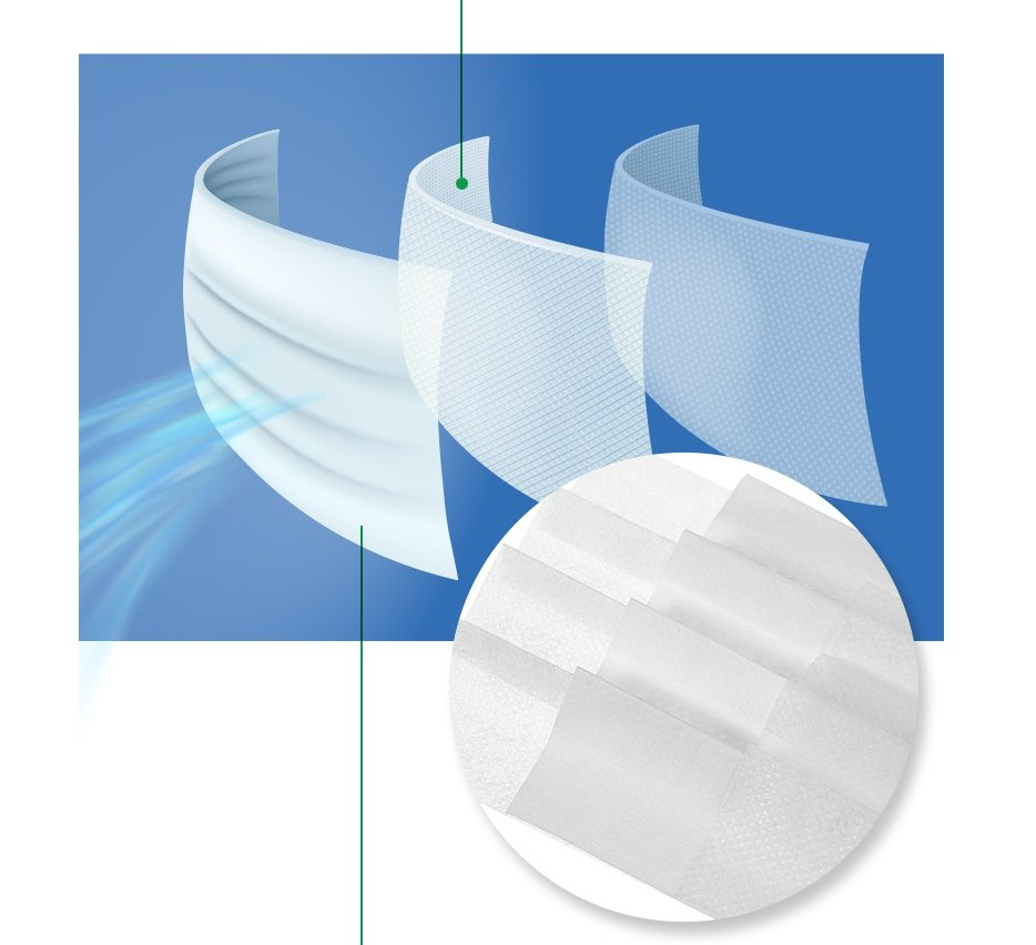 ■ 三層結構設計,含 MB (Melt Blown) 熔噴過濾層,有效阻隔飛沫。