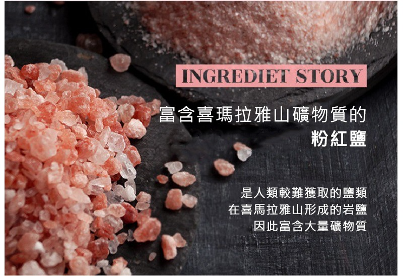 ●採用富含喜瑪拉雅山礦物質的粉紅鹽