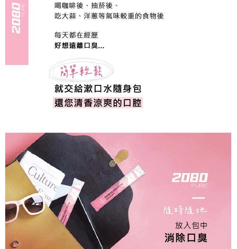 ■ 小包裝設計方便攜帶,讓您在辦公室、旅行或用餐後都能快速清潔口腔,維持健康。