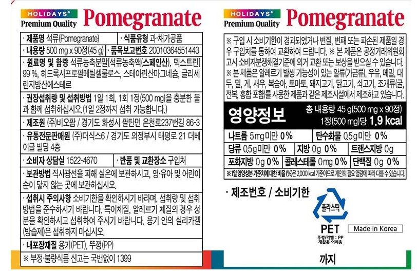 HOLIDAYS 紅石榴錠嚴選優質石榴濃縮精華,每錠含有豐富營養,為您提供每日所需的健康能量。小巧錠狀設計,方便隨身攜帶,隨時補充,讓您輕鬆維持青春美麗。每日一錠,幫助促進新陳代謝,維持健康機能,讓您由內而外散發光彩。本產品經過嚴格品質檢驗,讓您安心食用,享受健康生活。適合注重健康、追求美麗的您,是您維持青春活力的最佳選擇。