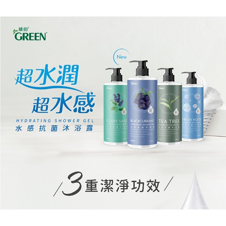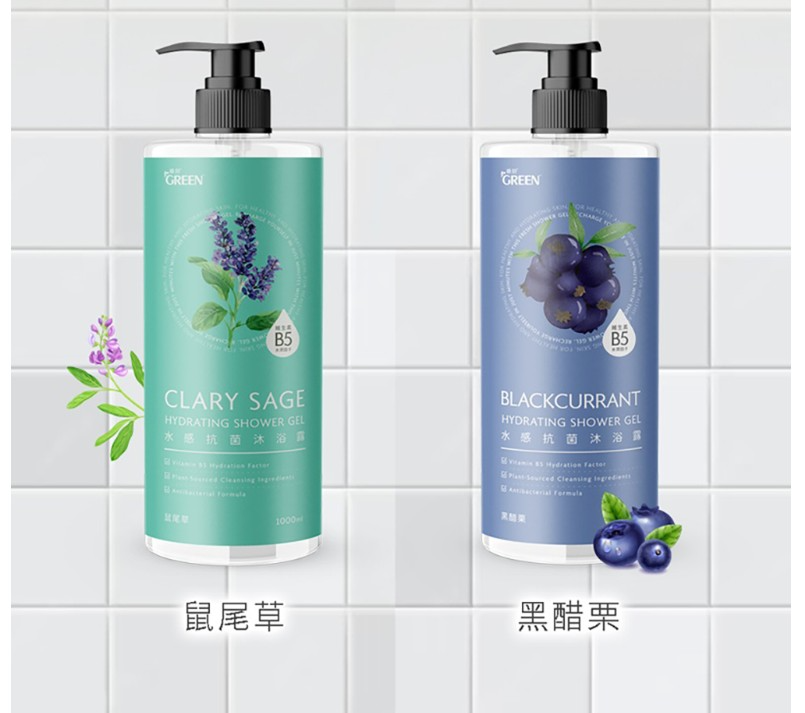 商品名稱:GREEN 綠的 水感抗菌沐浴露 黑醋栗 鼠尾草 清新海洋 茶樹 1L 1瓶 #沐浴乳