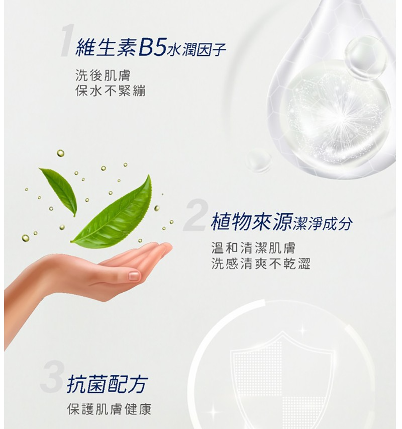 ■ 水感抗菌沐浴露,洗後肌膚清爽舒適,感受自然植物的呵護。