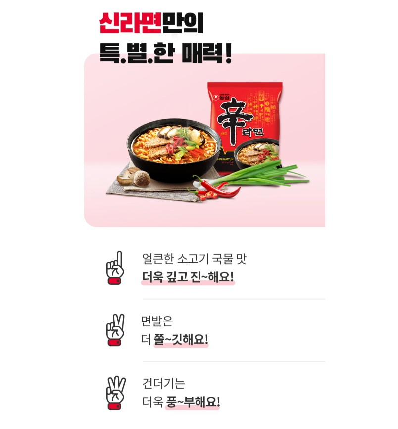 ■ 方便快速的美味選擇,農心辛拉麵讓您隨時隨地都能輕鬆享用,是宵夜或正餐的理想之選。