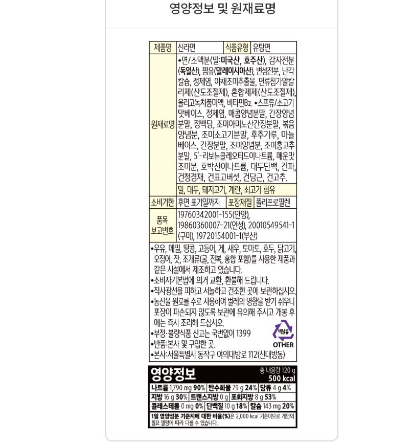 商品名稱:NONGSHIM 農心 辛拉麵 韓國境內版