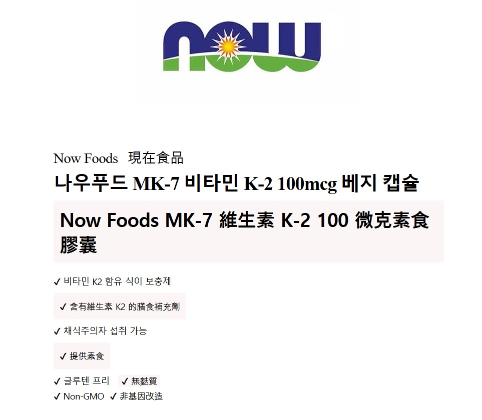■ NOW Foods MK-7維生素K-2膠囊,支持骨骼健康,讓您活動自如,享受健康生活。