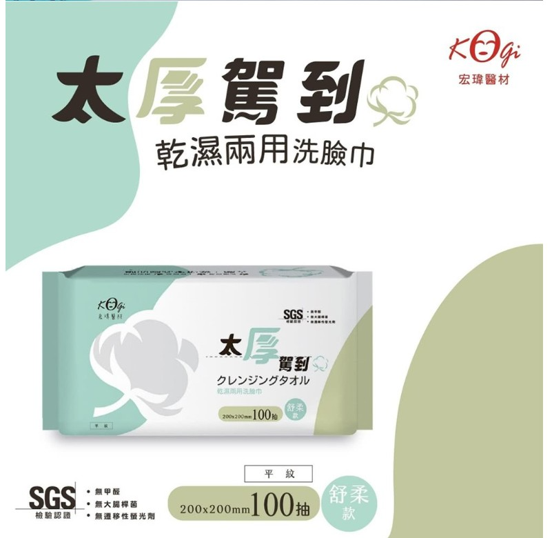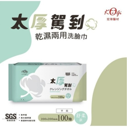 商品名稱:KOgi 宏瑋 太厚駕到 乾濕兩用洗臉巾 舒柔款 200x200mm 100抽/包 美容卸妝 洗臉淨膚 深層清潔 保養