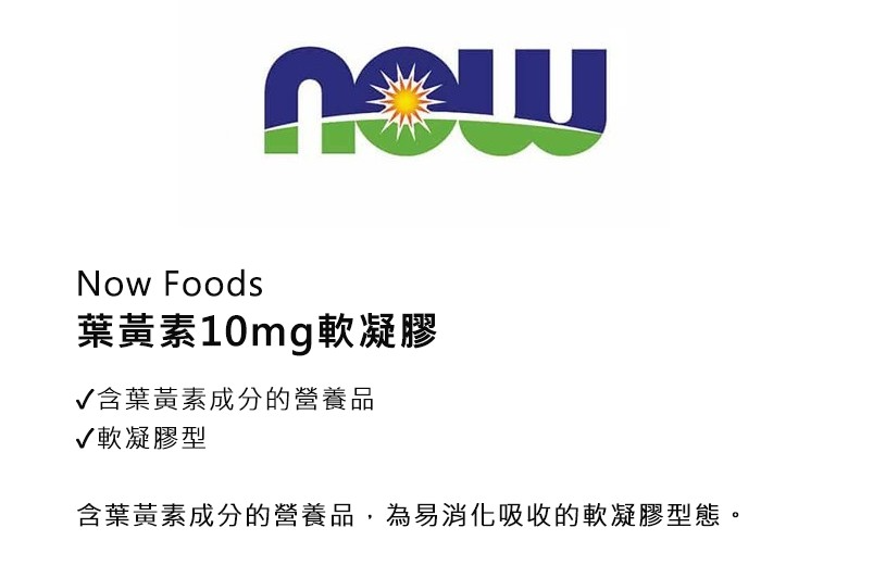 商品名稱:NOW Foods 葉黃素10mg軟膠囊 120顆 1罐