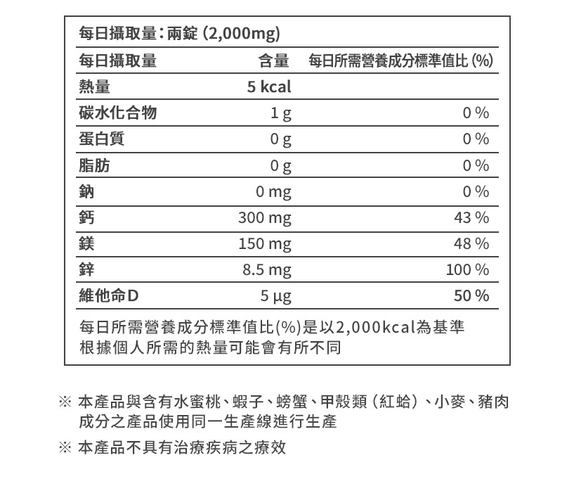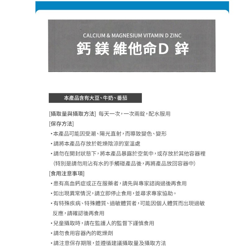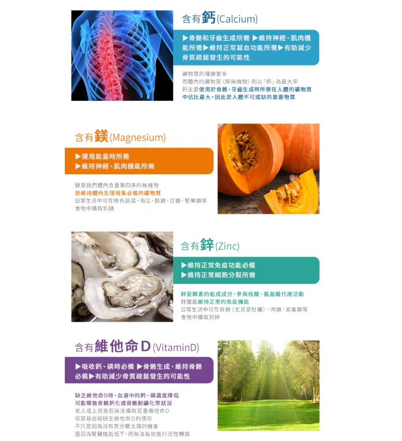 ■ 每日輕鬆補充鈣、鎂、鋅、維生素D,維持正常免疫功能,提升保護力。