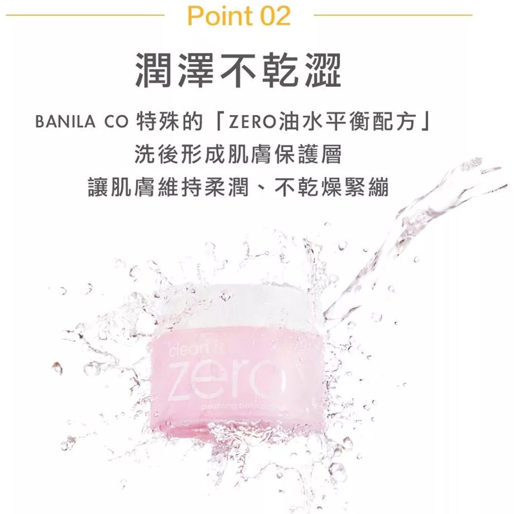 BANILA CO 芭妮蘭 Zero零感肌瞬卸凝霜,經典款,以雪酪般質地溫和卸除彩妝,深層清潔毛孔髒汙。獨特配方能有效卸除防水彩妝,同時保持肌膚水潤,洗後不緊繃。添加西印度櫻桃萃取物,富含維生素C,使肌膚更加健康有活力。使用後,肌膚感覺清爽潔淨,為後續保養做好準備。此卸妝凝霜已通過皮膚刺激測試,適合各種膚質使用,讓您輕鬆擁有潔淨透亮的肌膚。