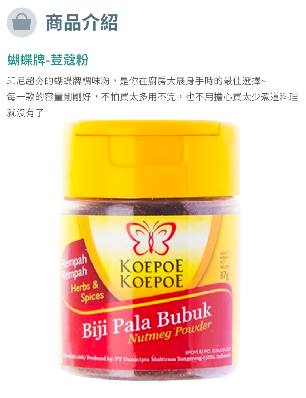 品名:KOEPOE蝴蝶牌調味料-肉豆蔻粉