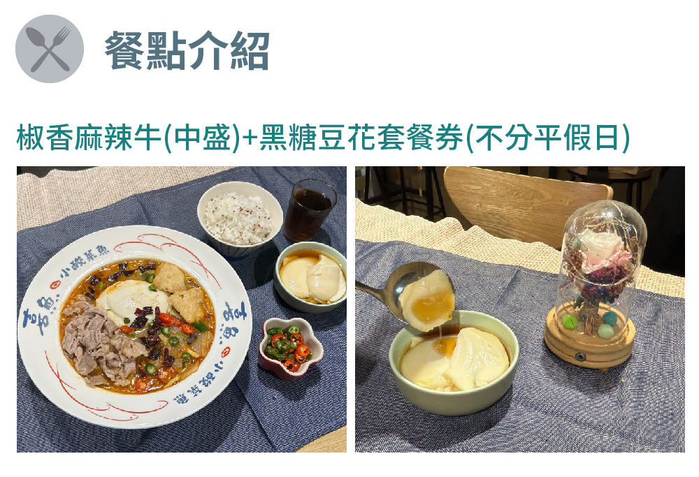 1. 本券享椒香麻辣牛(中盛)+黑糖豆花乙客,不分平假日可至全台任一門市兌換。