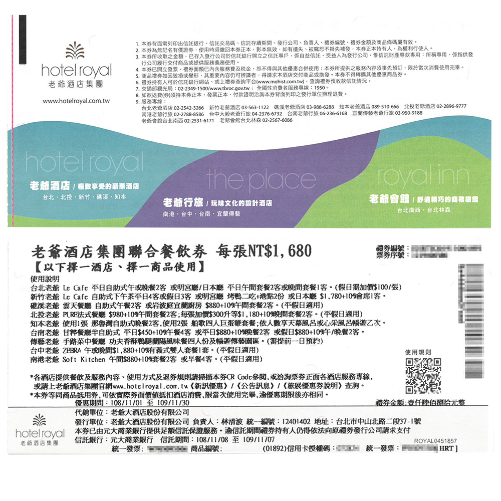 ※本票券為逾期券,不得要求提供原優惠方案,本票券為現金抵用券,可依票面折抵$1680元使用,限當天當餐次乙次抵用,不得分次抵扣。