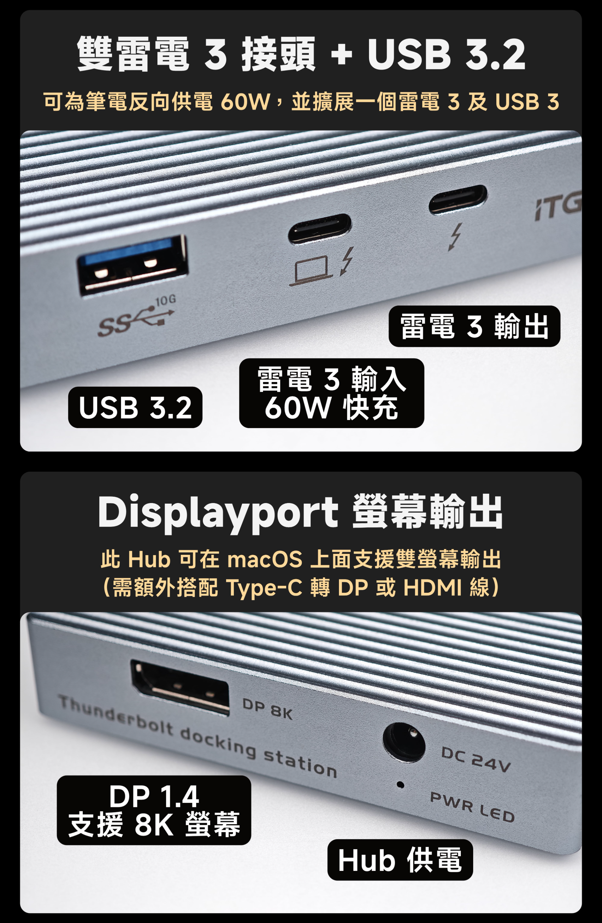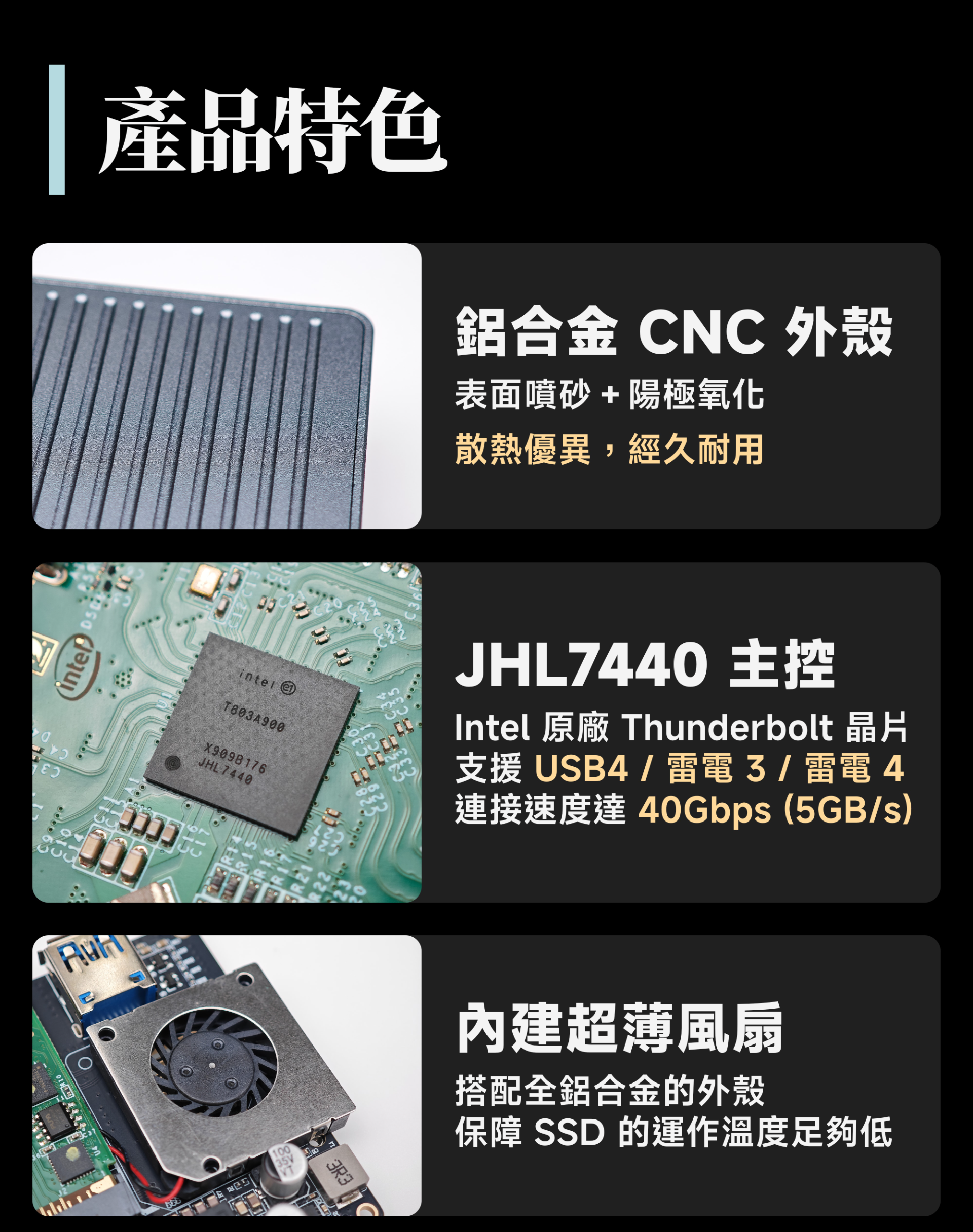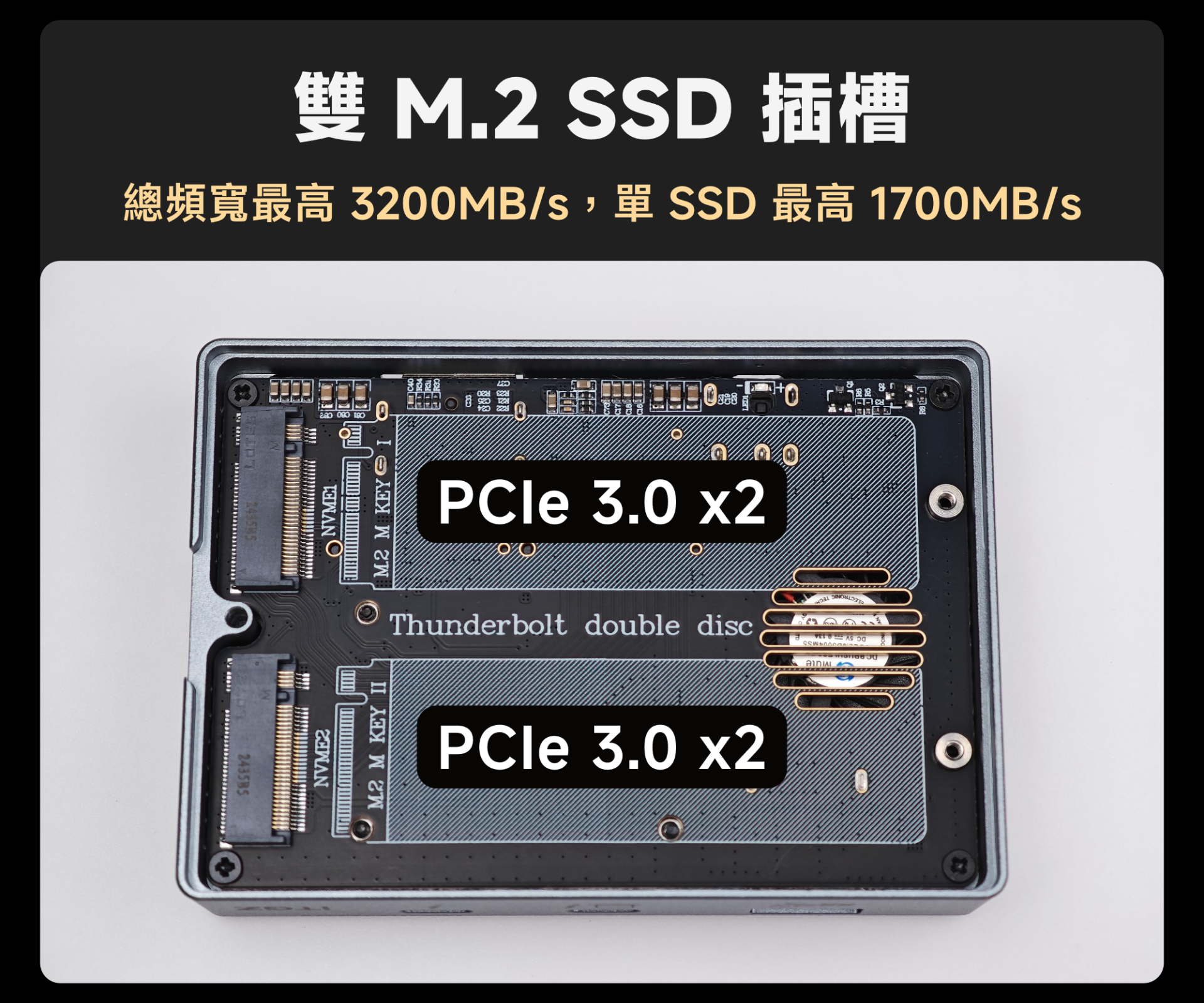 光連科技🪷 雷電3 40Gbps 外接盒 + Hub 雙 M.2 SSD 硬碟盒 Thunderbolt 4 USB4