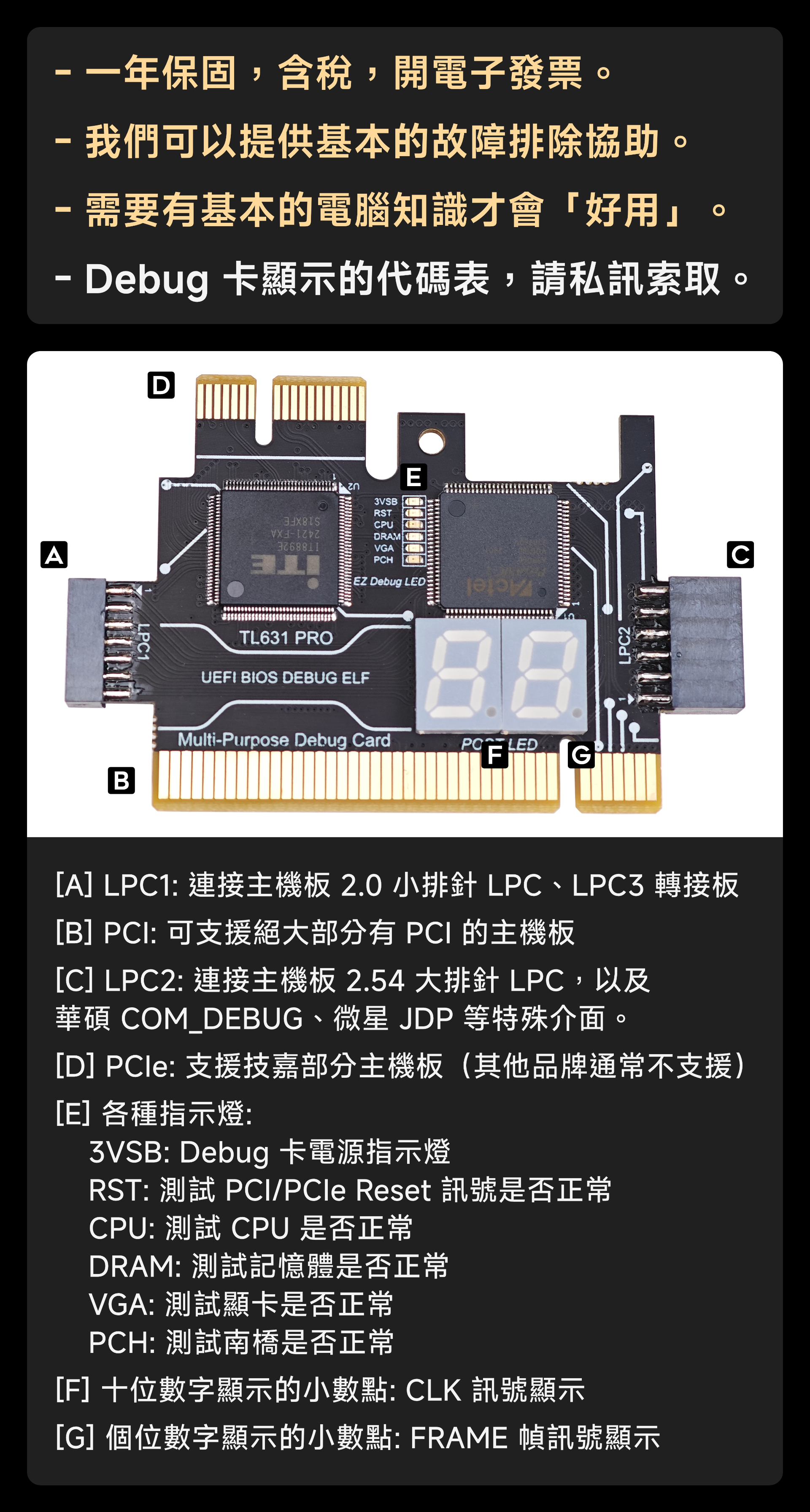光連科技🪷 TL631 Pro Debug 卡 偵錯卡 除錯卡 PCIe LPC TL460s TL611 Card