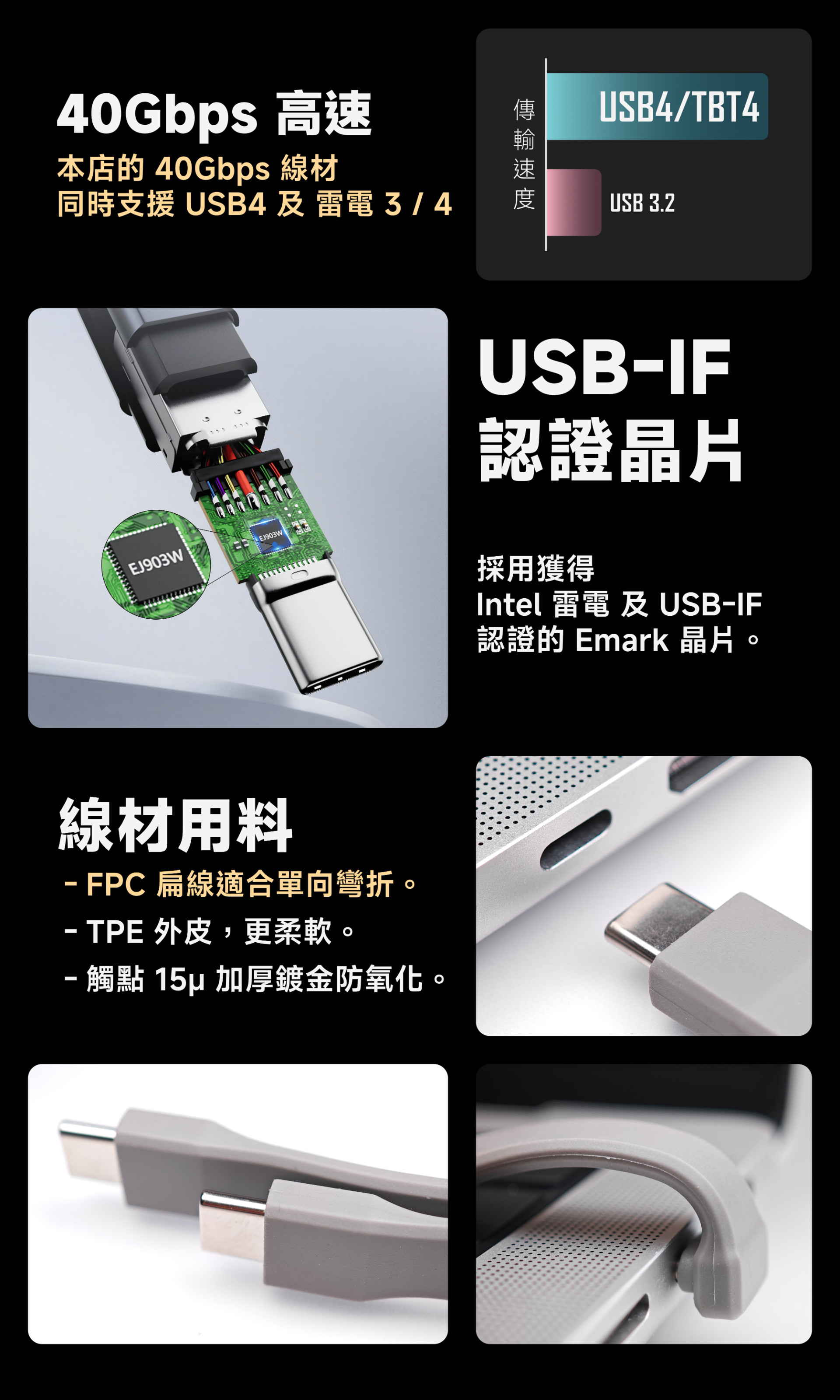 光連科技🪷 雷電4+USB4|40Gbps 240W 彎頭 FPC 扁線 |USB Type-C USB-C 磁吸外接