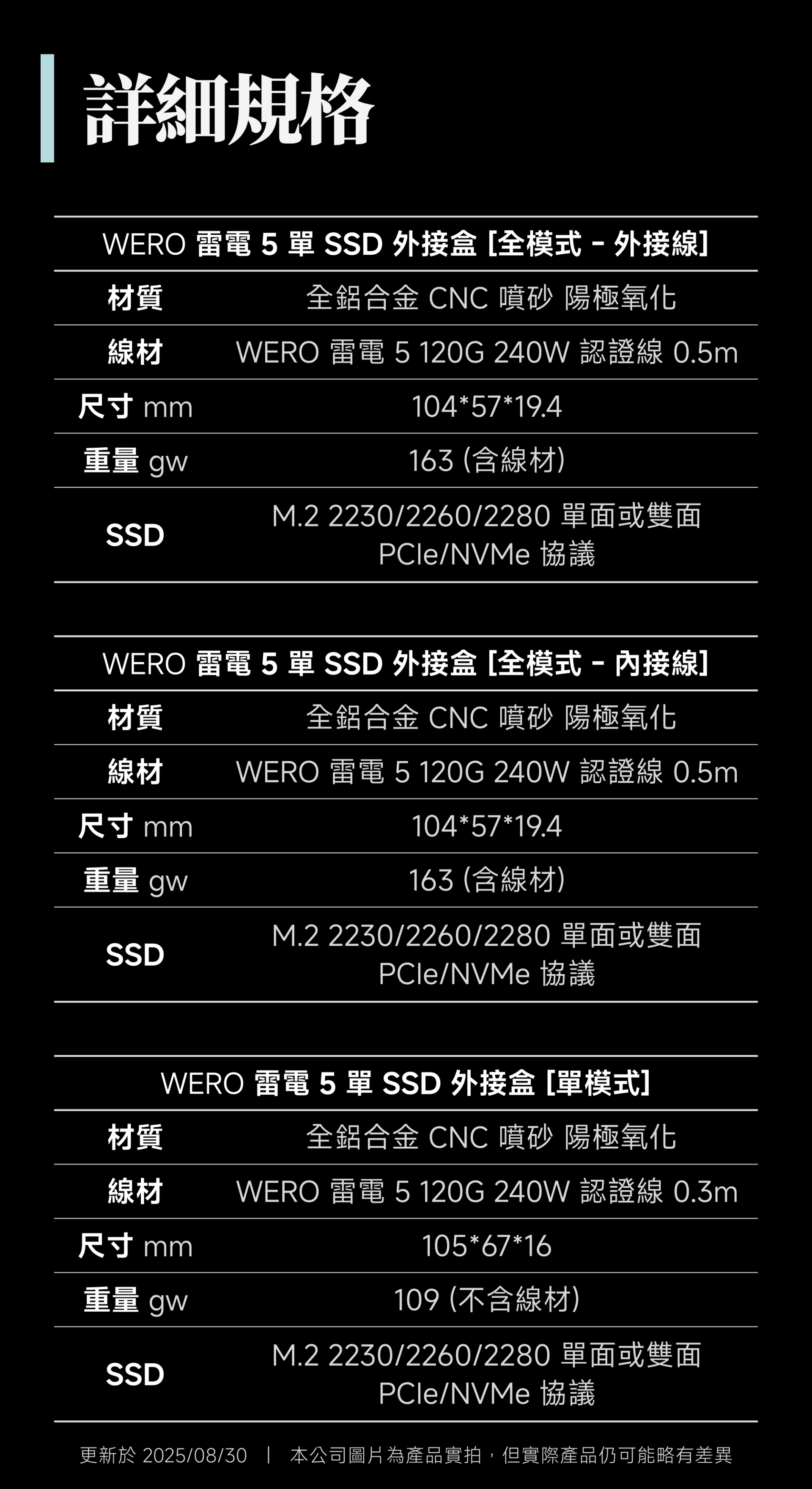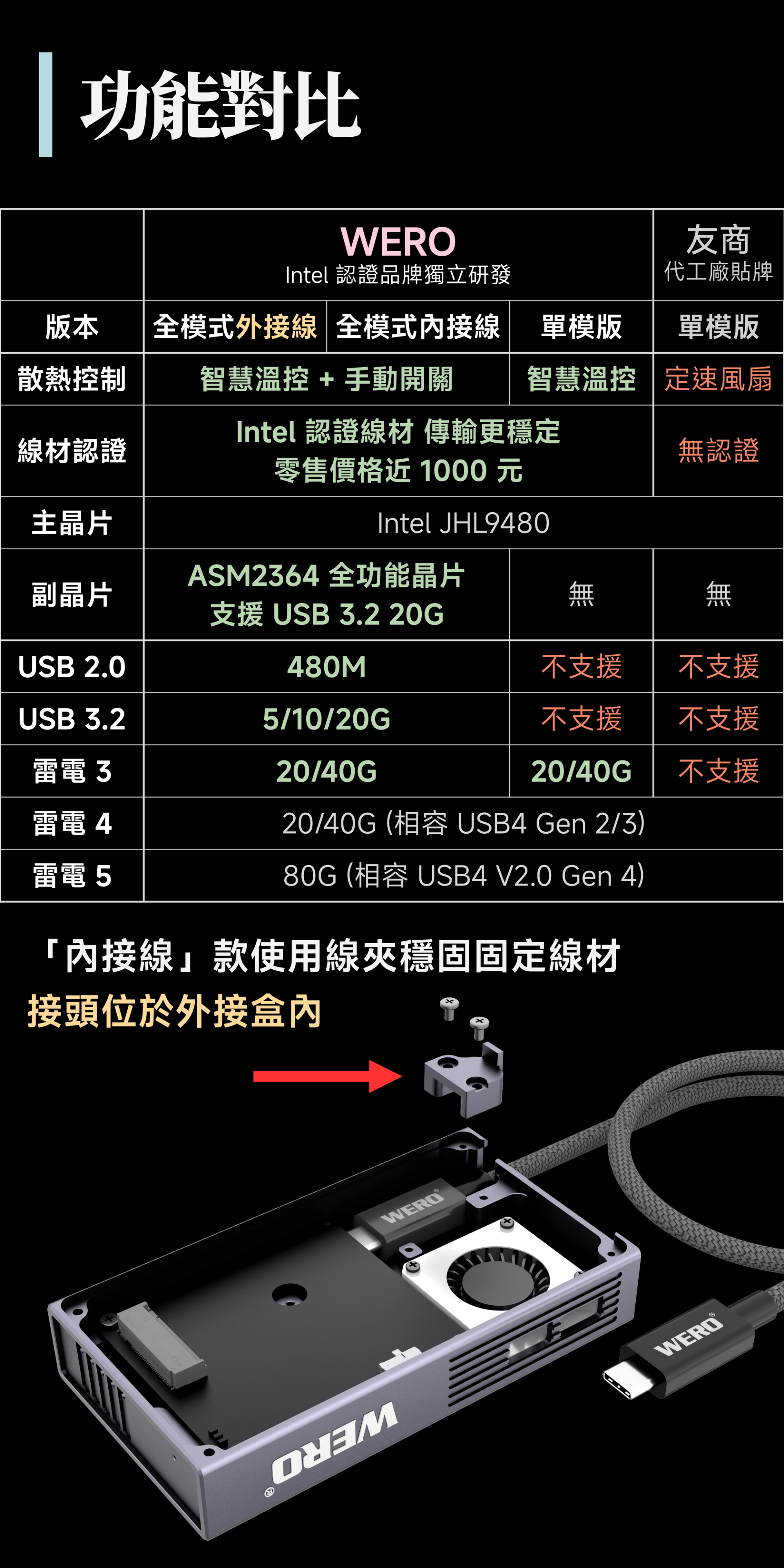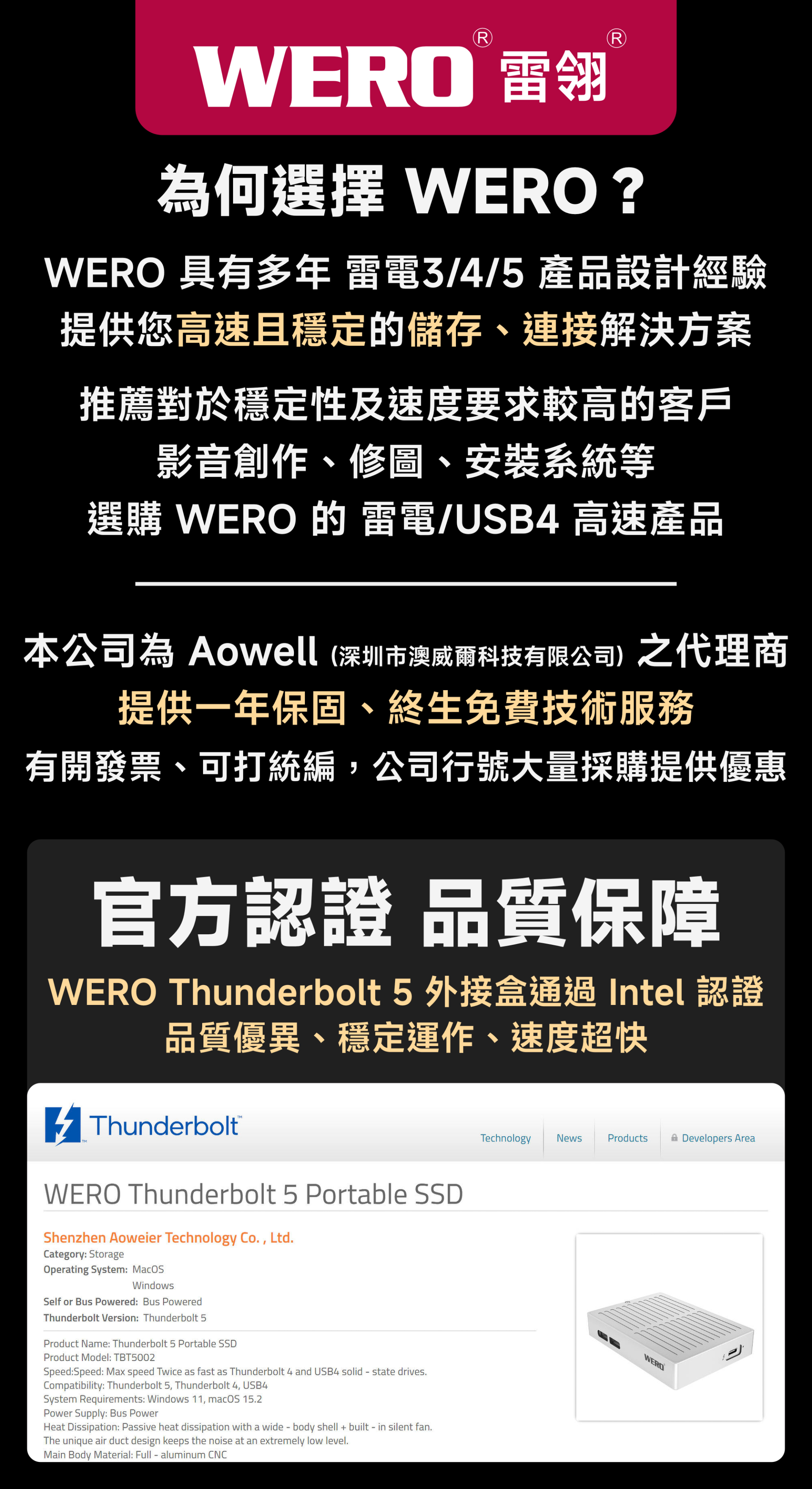 WERO 雷電 5 全模式 SSD 外接盒 Thunderbolt 5 120G 80Gbps 80G 雷電5 USB4