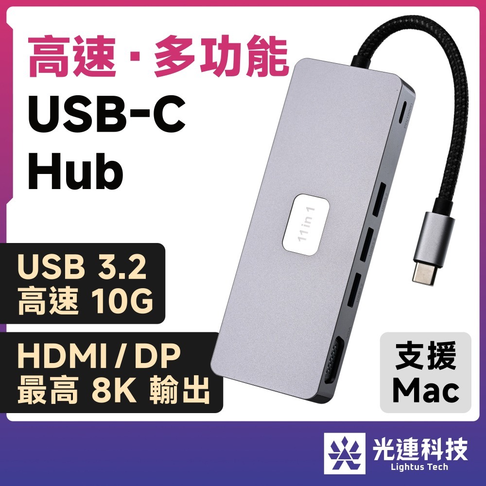 光連科技🪷 USB 3.2 Type C Hub 集線器 10Gbps HDMI DP VGA 3.1 4K擴展塢8K