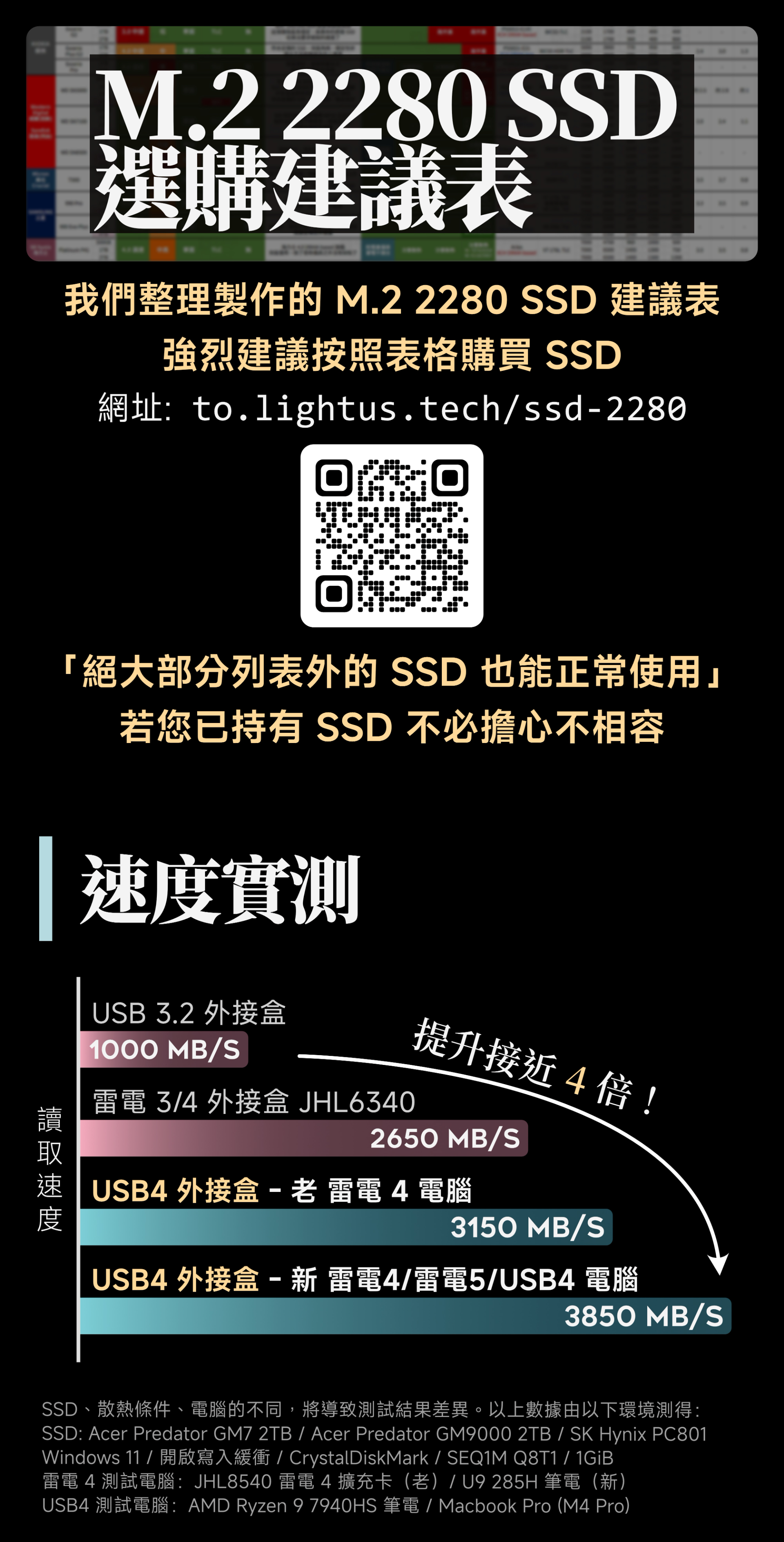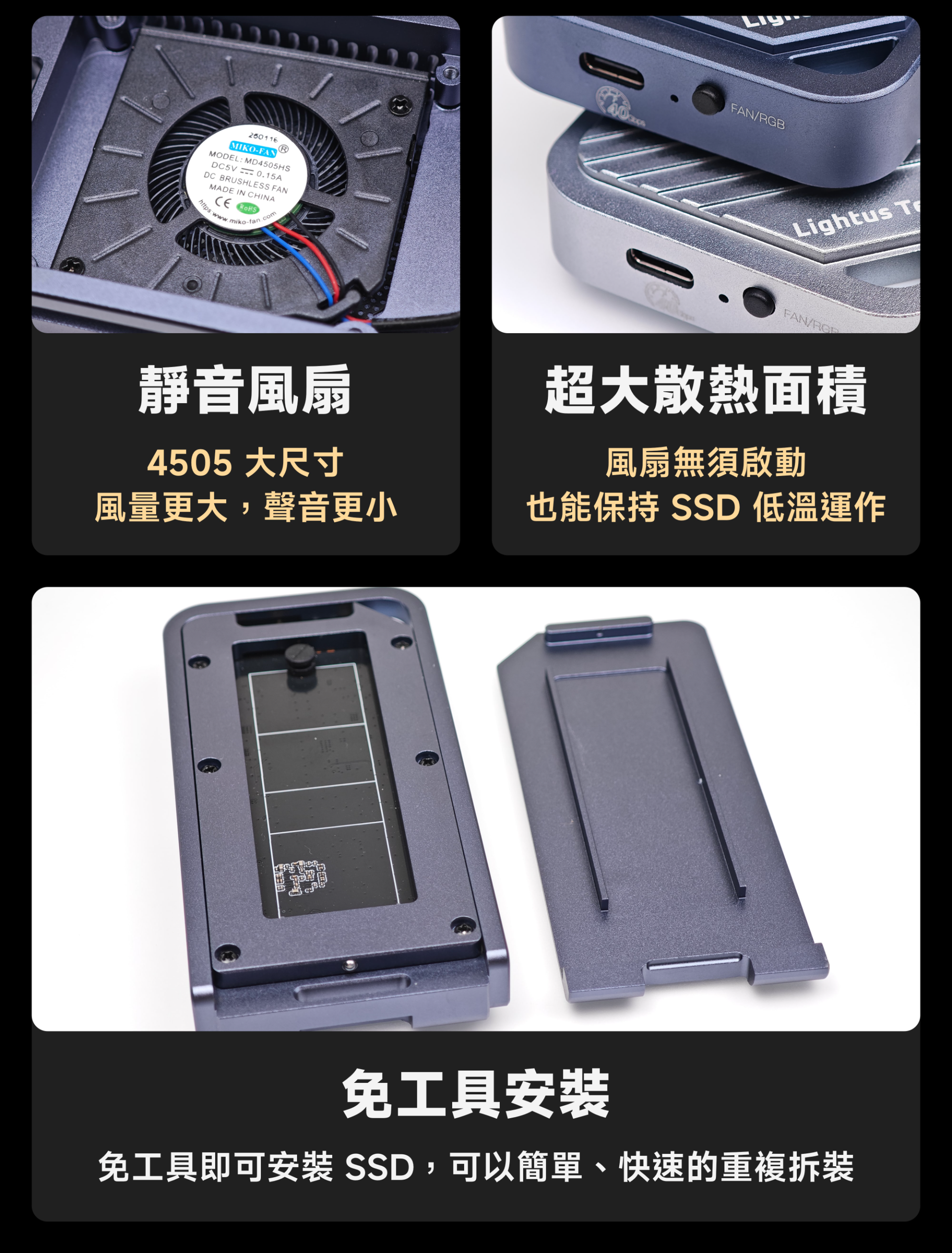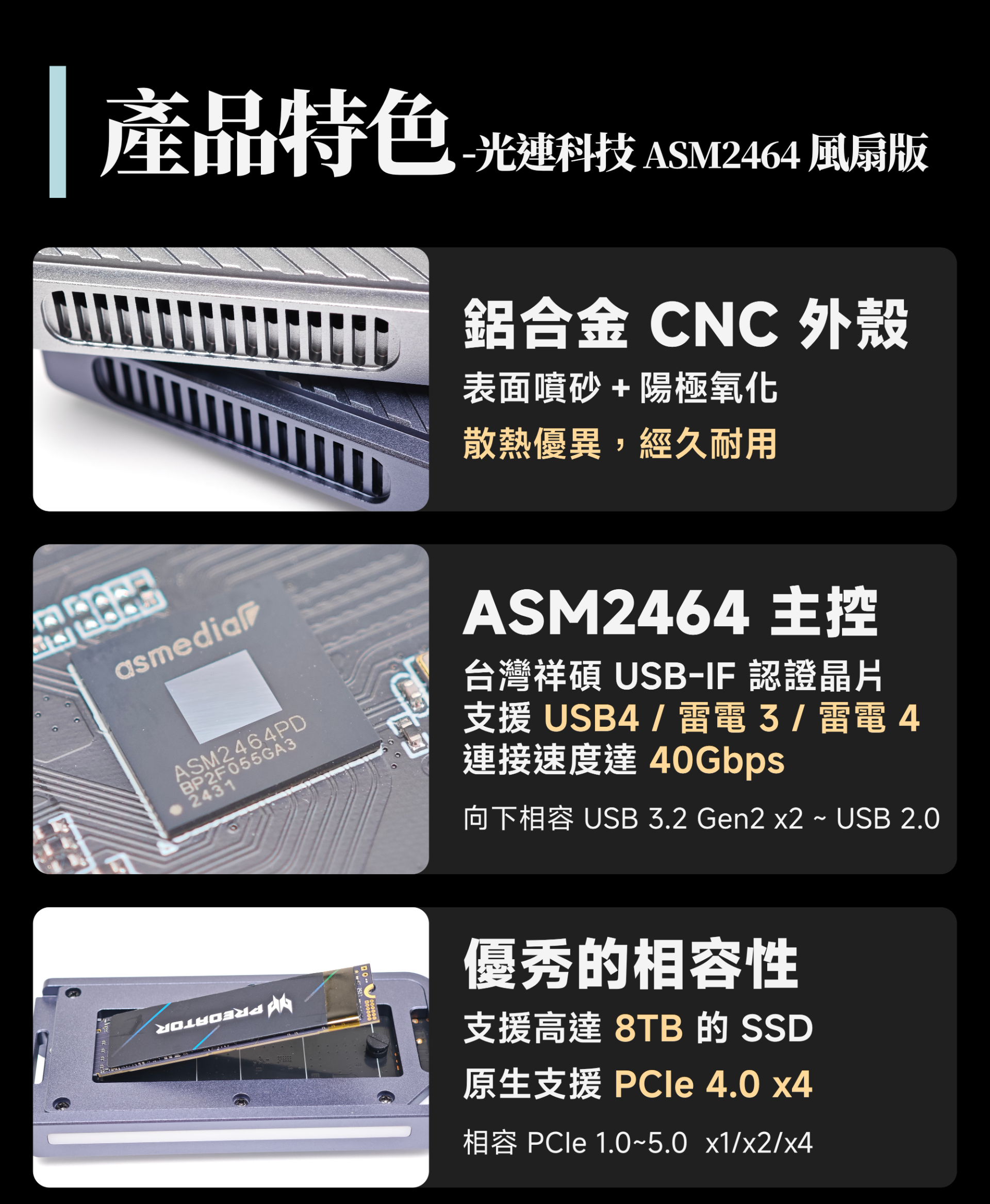 光連科技🪷 USB4 40Gbps 完全靜音 SSD 外接盒 ASM2464 硬碟盒 雷電 4 Thunderbolt3