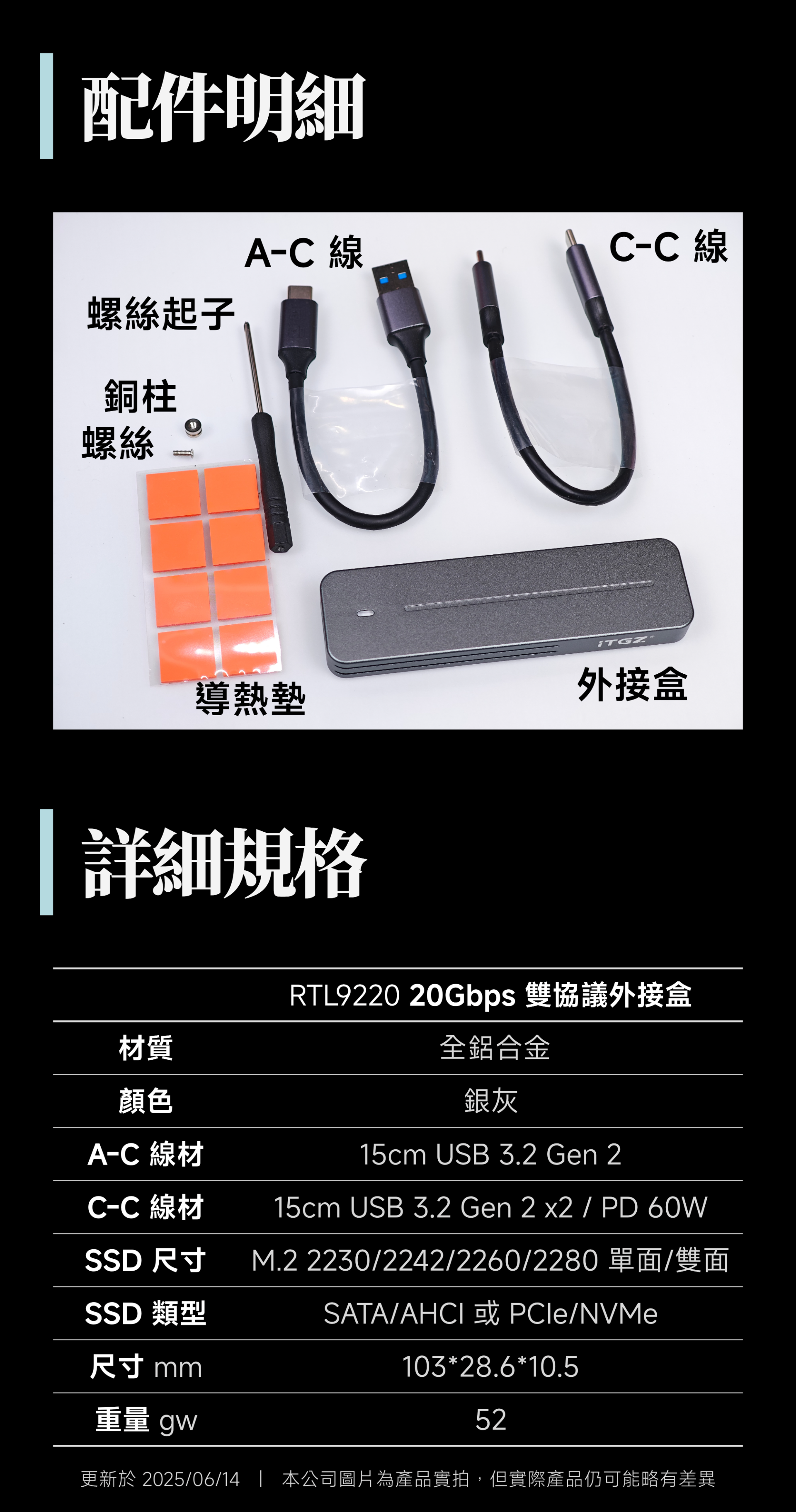 光連科技🪷 USB 3.2 Gen2x2 20gbps 外接盒 M.2 NVMe SSD 2280 RTL9220